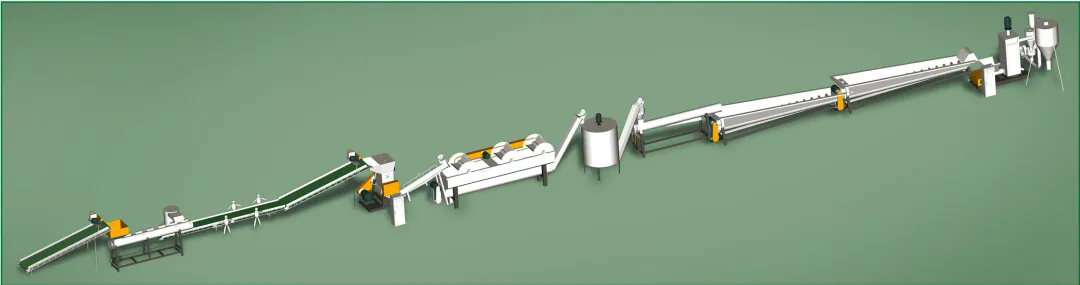 此套生產(chǎn)線有效解決了廢舊薄膜(農(nóng)膜、地膜、包裝膜、垃圾膜等)清洗過程工程量和耗水量偏大的問題,研發(fā)了一套專門針對(duì)農(nóng)膜地膜類泥沙含量高的破碎清洗處理線,很大程度的提高了產(chǎn)能,降低了水耗和電耗。整套設(shè)備從拆包到粗碎-除沙-細(xì)碎-清洗-脫水-造粒均可全自動(dòng)化流水生產(chǎn),生產(chǎn)出來的成品顆?;具_(dá)到了新料的品質(zhì),廣泛用于吹膜、注塑擠出、回收造粒等領(lǐng)域。